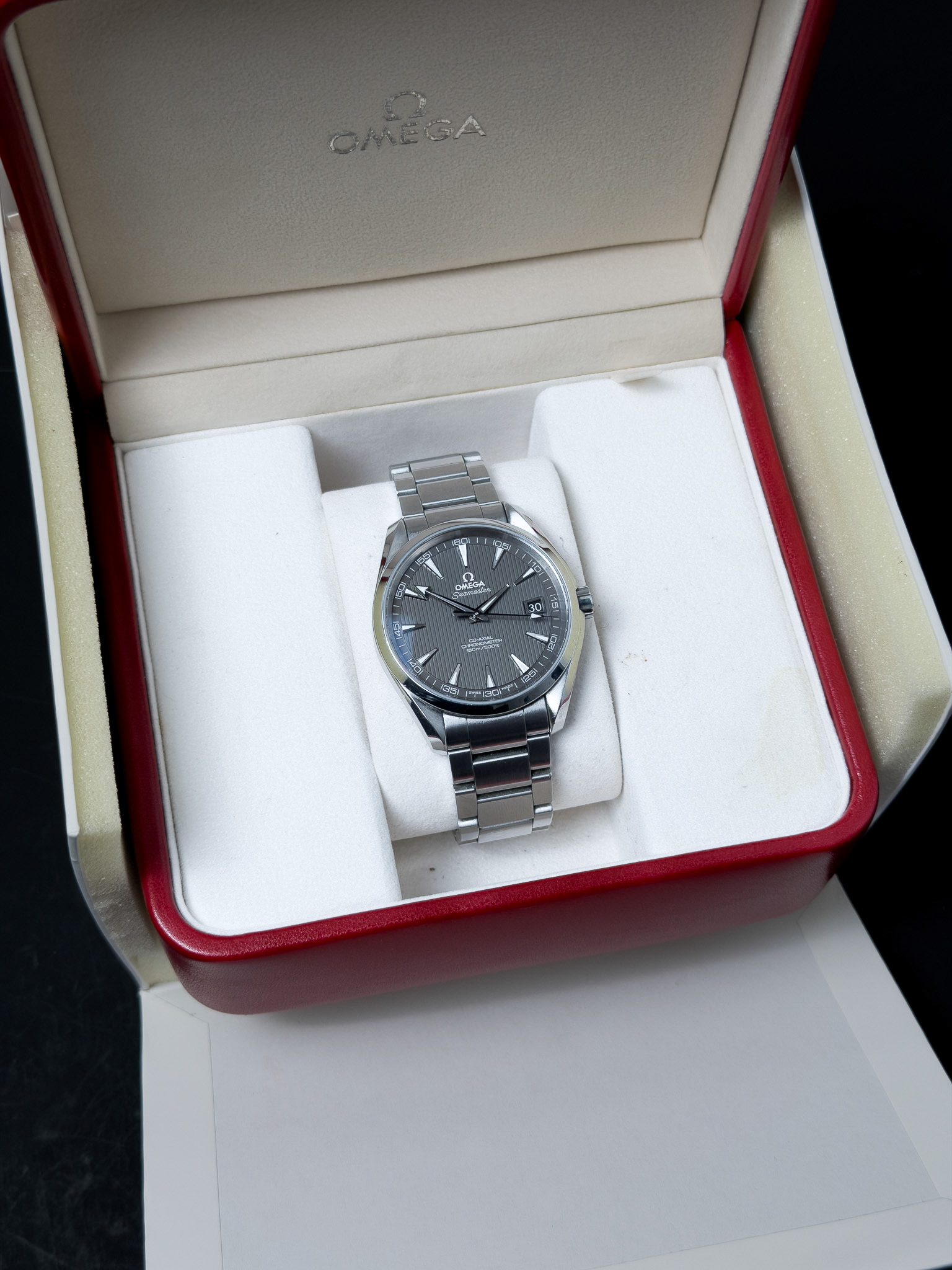 Omega Seamaster Aqua Terra 231.10.42.21.06.001. Hyvässä kunnossa oleva selkeälukuinen AT. Kellon alkuperäiset paperit on päivätty Suomessa 6/2012. Mukaan tulee kaikki (Full set). Kello on huollettu n. 2 vuotta siitten mutta tästä ei ole dokumentteja tallessa. Kello käy erinomaisin arvoin. Takuu 6kk.